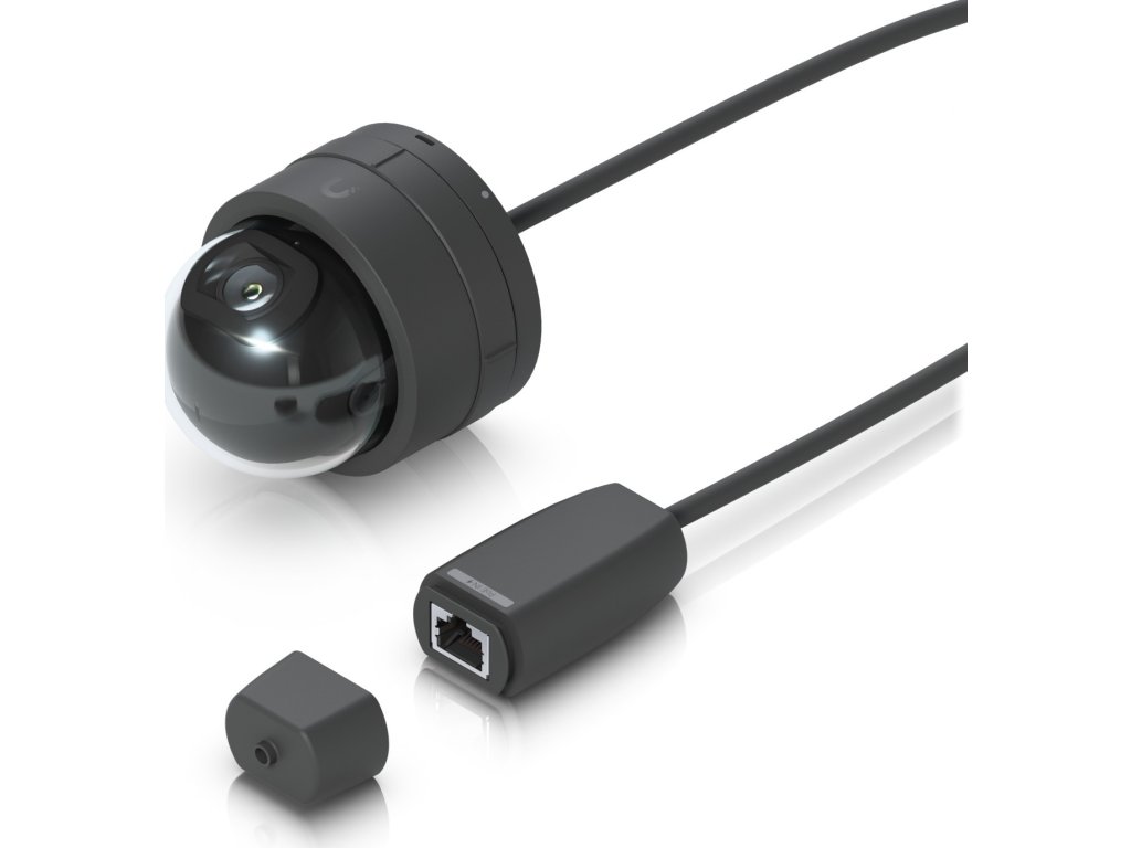 Dome kamera G5 Ultra v černé barvě od Ubiquiti Networks je kamera pro vnitřní použití s 4MP rozlišením (2688 x 1512 px @ 30 fps), velkým senzorem 1/2,4", fixním objektivem (cca 2.8 mm), pozorovacím úhlem 102°, diskrétním IR LED do vzdálenosti 20m, 2osé nastavení, antivandal ochraně IK06 a funkcemi inteligentní detekce UniFi AI pro sledování pohybu osob/zvířat a vozidel. Kamera ke komunikaci směrem do sítě využívá pouze 10/100 Mbps LAN port s podporou napájení přes 802.3af PoE s maximální spotřebou pouhých 4,2 W.