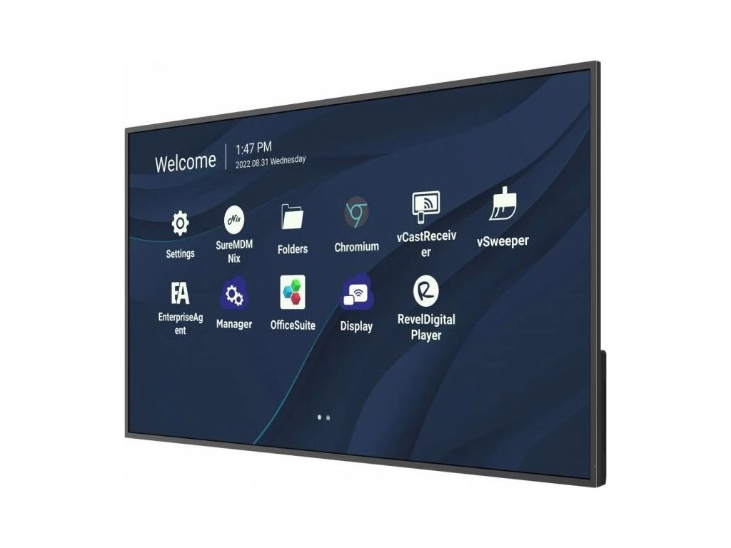 LED displej s úhlopříčkou 43", vhodný pro výuku či prezentace, disponuje 4K Ultra HD rozlišením 3840 × 2160 bodů s poměrem stran 16 : 9. Displej nabízí svítivost 450 cd/m2, dobu odezvy 6,5 ms a kontrastní poměr 1200 : 1. Potěší také široké pozorovací úhly 178° horizontálně i vertikálně. Použitý operační systém Android 11 umožňuje mimo jiné přímé přehrávání videa, prohlížení fotografií či poslech hudby z přítomných USB portů, nebo z interního úložiště o velikosti 32 GB. O plynulý chod zařízení se stará čtyřjádrový procesor doplněný 4 GB operační paměti. Nástroj myViewBoard nabízí širokou škálu interaktivních možností pro výuku, prezentace a týmovou spolupráci. K dispozici je také port USB-C, který kromě vysokorychlostního přenosu videa a dat umožňuje napájení připojených zařízení až do 65 W. Kromě toho jsou přítomny stereo reproduktory s celkovým výkonem 20 W. Díky konstrukci je panel schopný nepřetržitého provozu 24 hodin denně, 7 dní v týdnu.