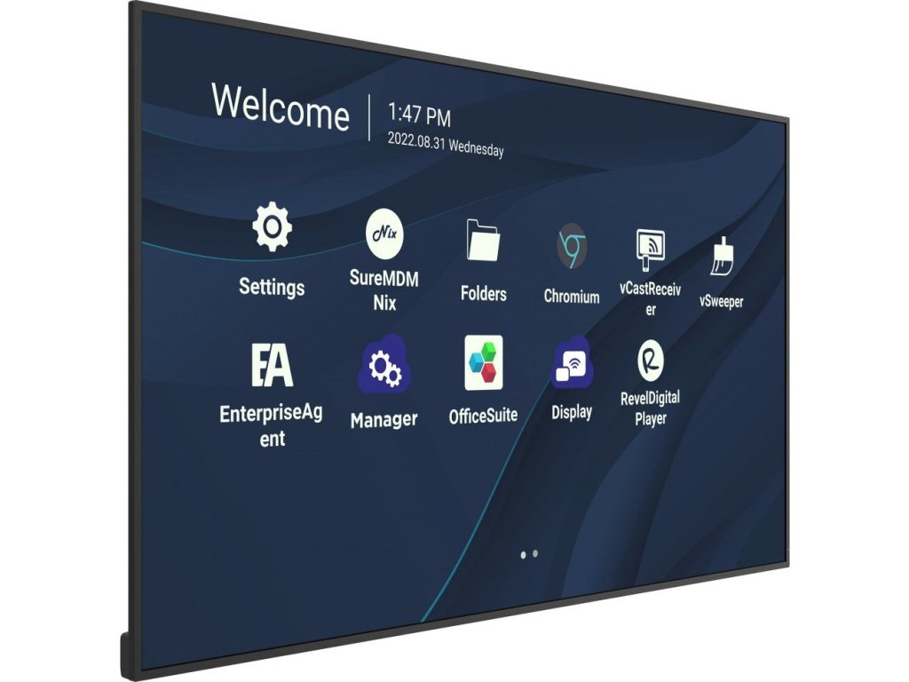 LED displej s úhlopříčkou 55", vhodný pro výuku či prezentace, disponuje 4K Ultra HD rozlišením 3840 × 2160 bodů s poměrem stran 16 : 9. Displej nabízí svítivost 450 cd/m2, dobu odezvy 6,5 ms a kontrastní poměr 1200 : 1. Potěší také široké pozorovací úhly 178° horizontálně i vertikálně. Použitý operační systém Android 11 umožňuje mimo jiné přímé přehrávání videa, prohlížení fotografií či poslech hudby z přítomných USB portů, nebo z interního úložiště o velikosti 32 GB. O plynulý chod zařízení se stará čtyřjádrový procesor doplněný 4 GB operační paměti. Nástroj myViewBoard Display umožňuje bezdrátové zrcadlení obrazovky z počítače či notebooku skrze internetový prohlížeč. Připojení k internetu je realizováno pomocí konektoru RJ-45. K dispozici je také port USB-C, který kromě vysokorychlostního přenosu videa a dat umožňuje napájení připojených zařízení až do 65 W. Kromě toho jsou přítomny stereo reproduktory s celkovým výkonem 20 W. Díky konstrukci je panel schopný provozu 24 hodin denně, 7 dní v týdnu.