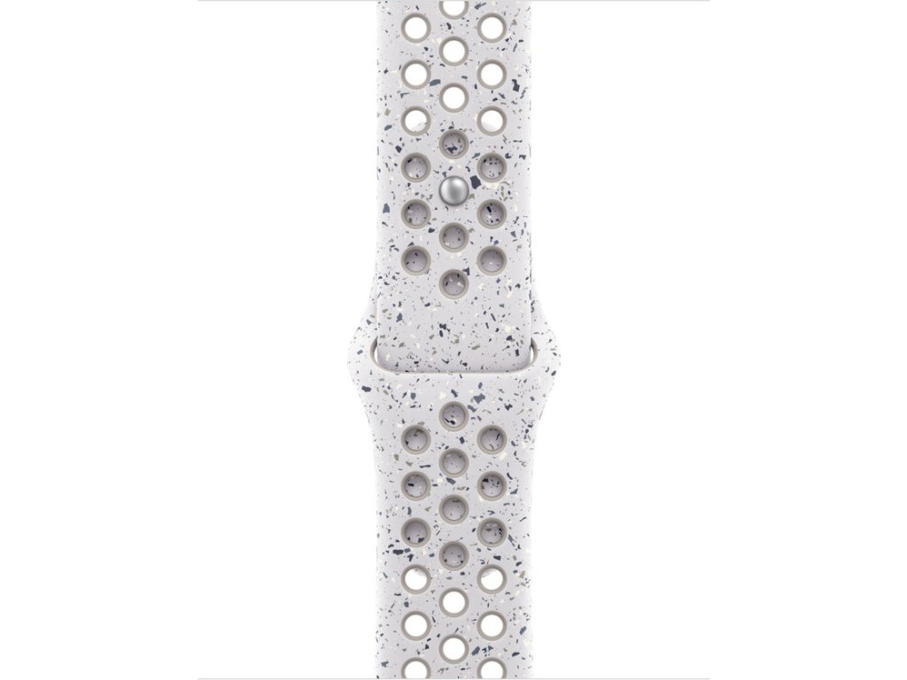 Tenhle sportovní řemínek Nike má vylisované otvory pro větší vzdušnost, je odolný, pevný a přitom překvapivě poddajný. Obsahuje barevné vločky, které tvoří náhodné vzory, takže každý řemínek je originál. Jeho hladký, hutný materiál se elegantně ovine kolem zápěstí a příjemně sedí. A zapíná se na hliníkový kolíček s matným povrchem, do kterého je pečlivě vygravírované logo Nike Run.