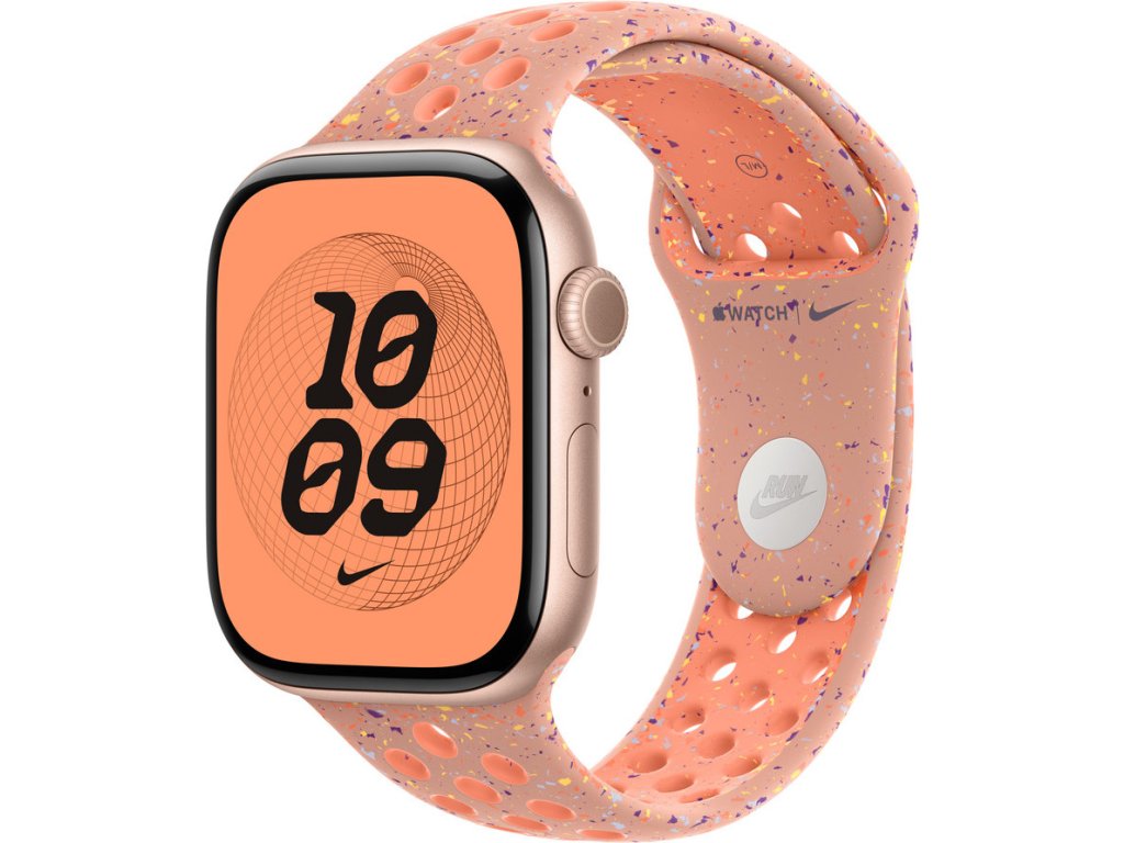 Tenhle sportovní řemínek Nike má vylisované otvory pro větší vzdušnost, je odolný, pevný a přitom překvapivě poddajný. Obsahuje barevné vločky, které tvoří náhodné vzory, takže každý řemínek je originál. Jeho hladký, hutný materiál se elegantně ovine kolem zápěstí a příjemně sedí. A zapíná se na hliníkový kolíček s matným povrchem, do kterého je pečlivě vygravírované logo Nike Run.