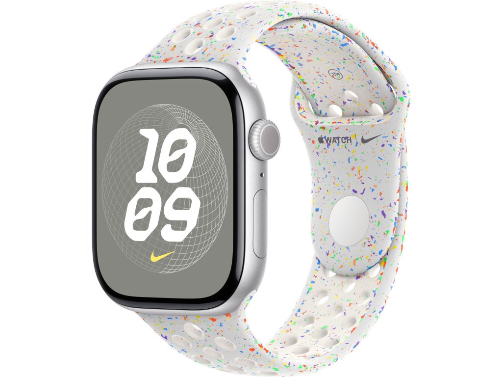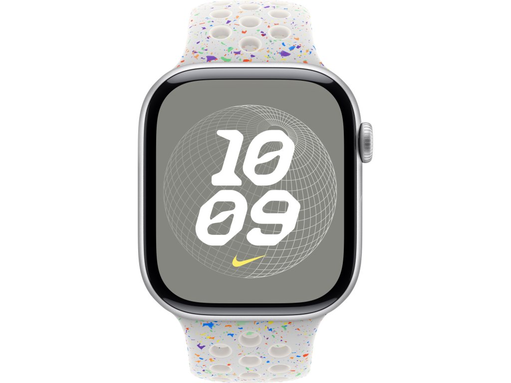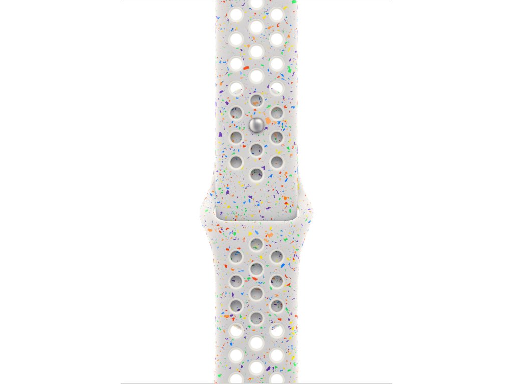 Tenhle sportovní řemínek Nike má vylisované otvory pro větší vzdušnost, je odolný, pevný a přitom krásně poddajný. Obsahuje barevné vločky vytvářející náhodné vzory, takže každý řemínek je originál. Jeho hladký, hutný materiál se elegantně ovine kolem zápěstí a příjemně sedí. A nově se zapíná na hliníkový kolíček s matným povrchem.