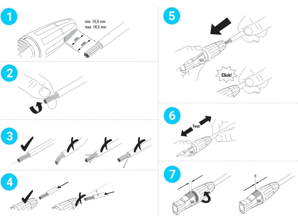 Zastrčit, otočit, hotovo: nejjednodušší způsob kabeláže solárních zařízení. Hledáte jednoduchý a bezpečný konektor, který lze nainstalovat bez těžkých krimpovacích kleští? Nejrychlejší „PUSH IN“ připojení - jednoduše zastrčte kabel, otočte a hotovo. Rychlejší je lepší, to platí i pro zapojení solárních systémů. Konektory jsou také odolné vůči nízkým teplotám a lze je rychle a snadno nainstalovat zcela bez krimpovacích kleští.