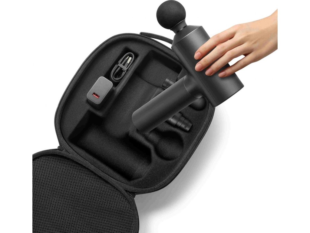 Xiaomi Fascia Gun - kvalitní masážní pistole od Xiaomi, tři rychlosti (1800/2400/3200 ot/min), tři vyměnitelné hlavice (kulatá, plochá, oválná), senzor aplikovaného tlaku upozorní na nadměrně vyvíjený tlak na tkáň. Motor dokáže vyvinout sílu až 0,57N a pronikne do svalové tkáně až 10mm hluboko. Hlučnost 48-60dB, velká 2600mAh baterie vydrží až na 5 hodin provozu (na první rychlost), USB-C nabíjení. Pogumovaná rukojeť zamezí přenášení vibrací do rukou. Integrované nasávání a vypouštění vzduchu pro ochranu proti vniknutí potu. Součástí balení výměnné hlavice, USB kabel a adaptér do zásuvky, cestovní pouzdro.