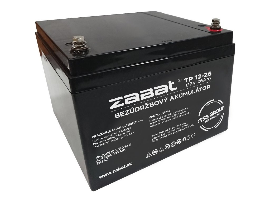Akumulátor 12 V - 26 Ah - rozmer 165 x 175 x 124 mm, hmotnosť 8,0 kg / ks, cena bez recyklačného poplatku, vhodné pre použitie v CCTV a EZS